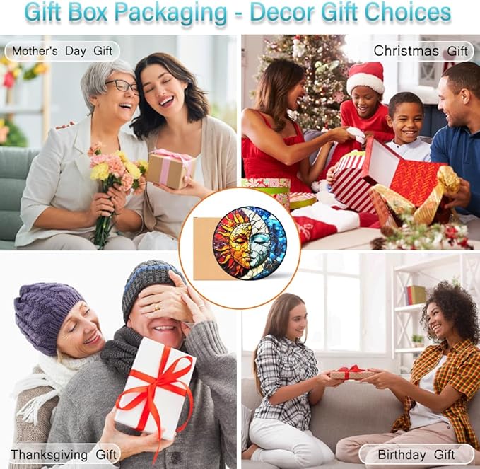 - Stained Glass Material: Window hanging is made with high-end stained glass, compared to acrylic materials, the colors are more vibrant. Tufeu sun and moon decor stained glass suncatcher captures sunlight with excellent light transmission, displaying vibrant colors. The flat patterns are clear, and the image softens when the diamond dots faces outward, exquisite and beautiful