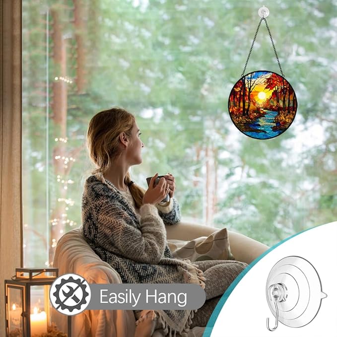 - Indoor Outdoor Decor Festival Gift: Creative painted glass hangings add a colorful glow to your life.Window hanging fit for indoor decor for bedroom, bathroom, kitchen, door, cafe, office, classroom, porch, balcony, etc. Also lovely outdoor decor for garden, patio, party and RV camping. Also it makes an ideal gift for mother, wife, grandmother, teacher, friend and nature lover, expressing love and appreciation for any holiday occasion