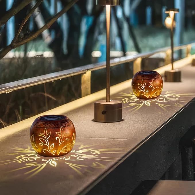 - Exquisite Design: The 2 pack solar lanterns feature a flower hollowed out design that projects warm light in the dark, creating beautiful projections. At night, the outdoor lantern will light up and decorate your garden