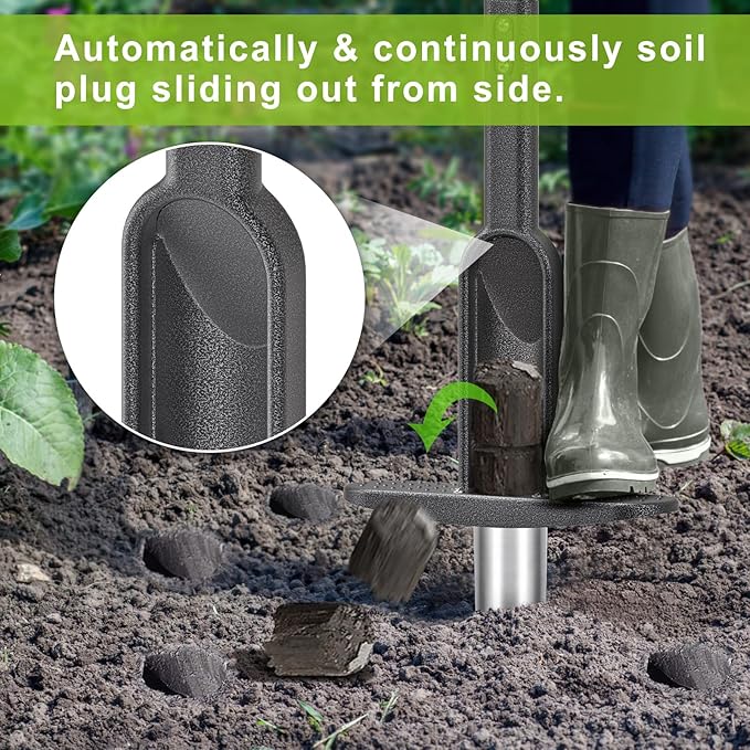 Dolibest Bulb Planter Tool w/Soft Rubber Grip, Grass Plugger Tool w/Stainless Steel Sharp Serrations, pre-Assembled Sod Plugger w/Centre Auto Dump Design for Lawn Planting Bulbs and Grass Repair