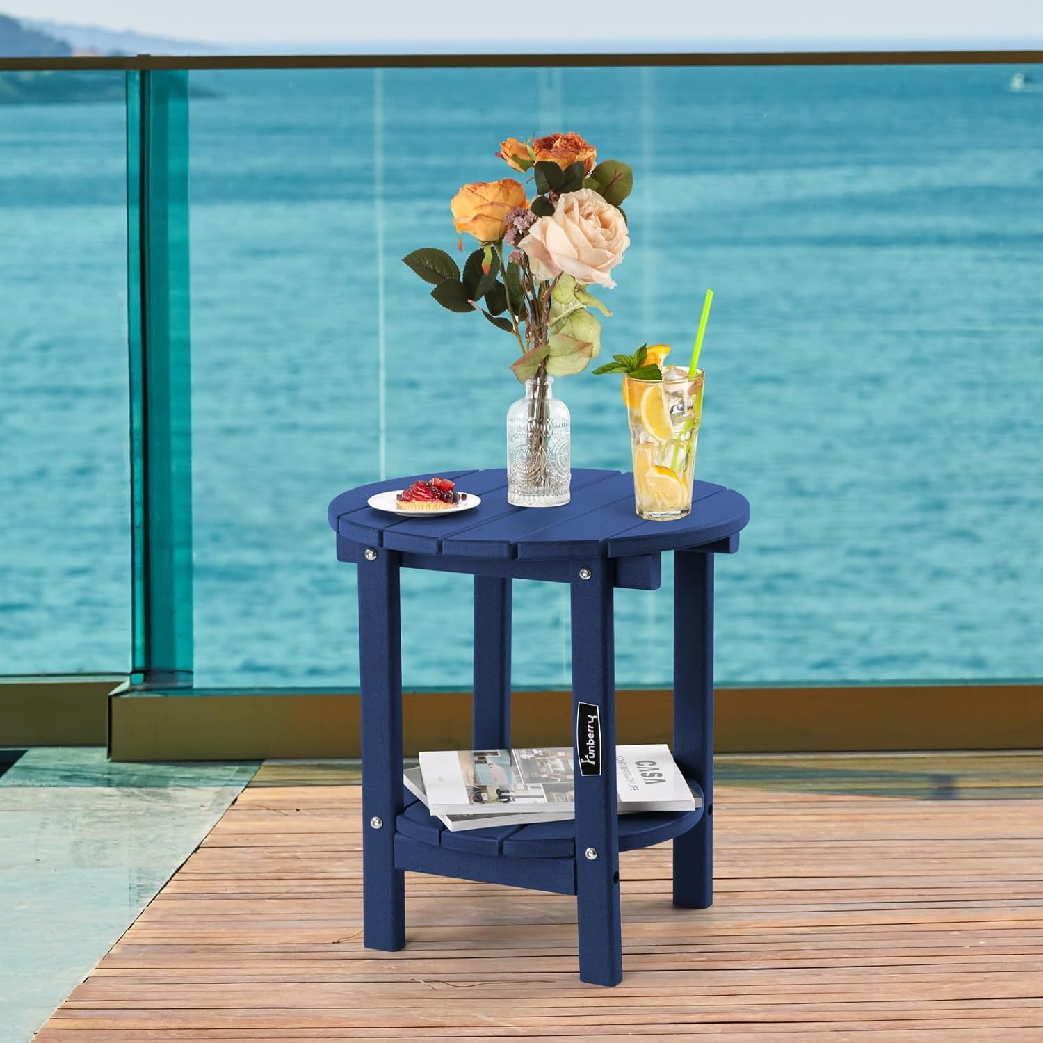 - Double Layers & Smooth Design: The 2-tier design of this outdoor side table provides more storage space for food, drinks, books and other items. The smooth edge design makes this patio table more safe especially for families with children. This patio side table is an ideal companion for Adirondack chairs, Rocking chairs and Chaise Lounge chairs.