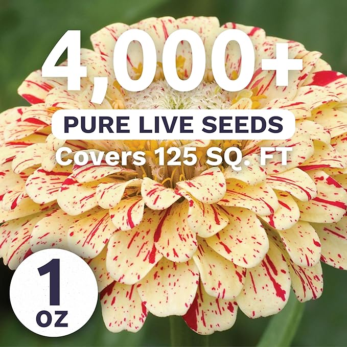 Zinnia Peppermint Stick - Large 1 Ounce Packet - 4,000 Flower Seeds for Planting - Zinnia elegans