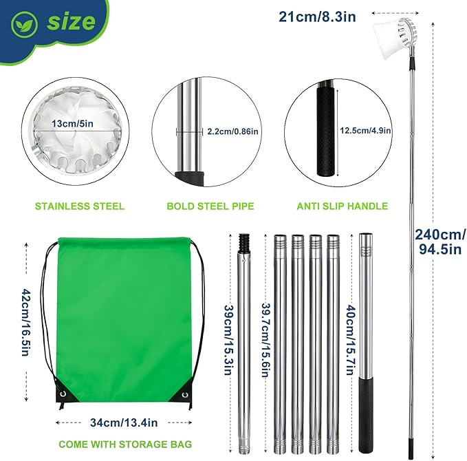 - Easy and Practical Installation: Equipped with 4 metal poles, a picker tool head with a fabric bag, and a storage bag. Assembling all the parts by twisting them together takes only a few minutes without requiring additional tools.