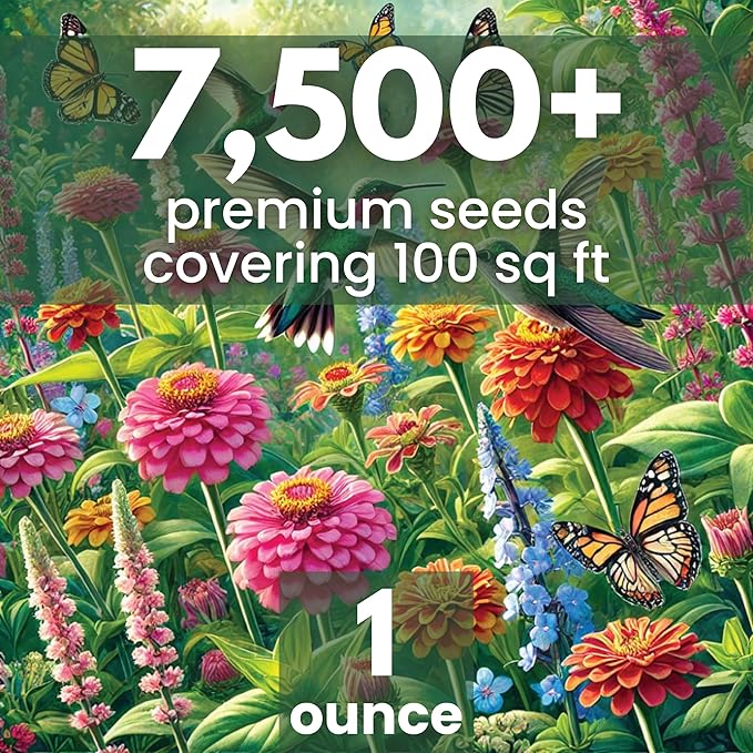 Hummingbird Butterfly Mix - Large 1 Ounce Packet - 7,500 Flower Seeds for Planting - Wildflower Mix
