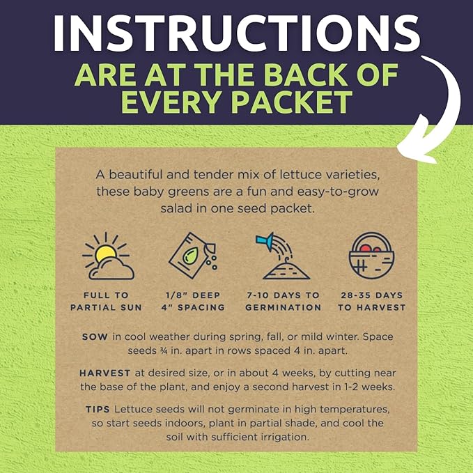 - LETTUCE & GREENS ESSENTIAL SEED VARIETY PACK: Fresh, crisp, and full of life! Grow 5 essential lettuce varieties, from buttery Buttercrunch to crunchy Red Iceberg and tender Romaine. Perfect for salads, sandwiches, and garden-fresh bites!