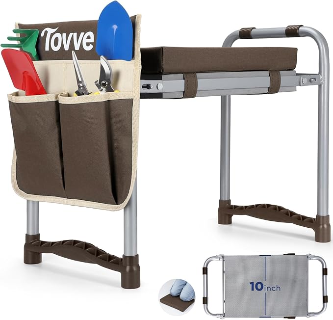Foldable Garden Kneeler and Seat, Heavy Duty Garden Stool with 10" Wide Detachable Kneeling Pad, Portable Garden Bench Chair with Large Garden Tool Bag, Gardening Gifts for Women, Seniors