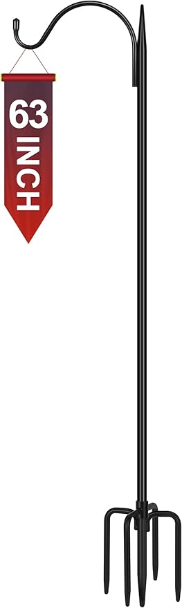 - 【HIGH QUALITY & ADJUSTABLE】 The height of the shepards hooks for outdoor is 63 inch. Our garden hook is made of high quality iron, the black coating on the surface is rust resistant. The height of the shepherds hook for bird feeder can be adjusted by adding or reducing the pole sections, each pole section is 16 inch. So you can adjust the height to 47 and 31 inch.