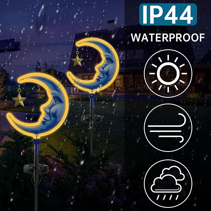 Solar Outdoor Garden Lights - Outdoor Decor Moon Neon Lantern for Patio,Solar Powered Pathway Lights Outdoor Decorative Lights Waterproof Led Landscape Lighting for Pathway,Yard,Lawn(2 Pack)