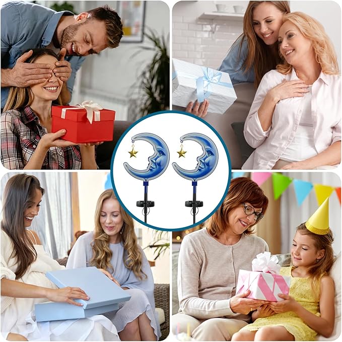 - This solar garden lamp have a cute styling design.There are 2 pieces moon LED stake lights and 2 floor stakes, nice for outdoor pathway garden decoration.Also, it is applicable to patio, path, lawn and other places.