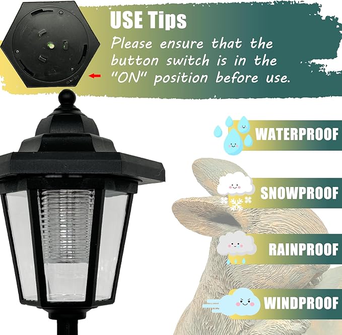 - 【AUTO CHARGE & LIGHT UP】 Please ensure the switch is "ON" before use and place the rabbit in the sun. It only takes 6-8 hours to charge fully. It will automatically light up in the evening, and the working time is more than 12 hours, enough to illuminate the charm of the whole night. This energy-efficient outdoor bunny statue requires no wiring or batteries, making it a sustainable and hassle-free choice for your garden or patio