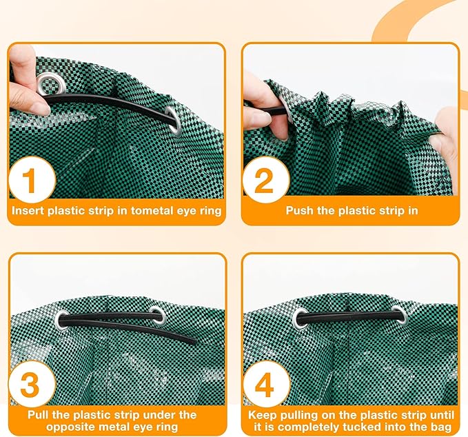 - Heavy Duty Gardening Bags-The Garden bag is made of PP woven fabric with waterproof PE coating, waterproof and tear-resistant. It can collect leaves, grass and so on. Note: It should not be put in the sunlight for a long time