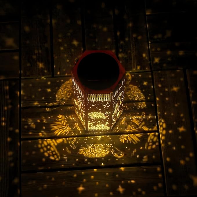 - Turtles Garden Decor - Opjoy Outdoor Turtles Solar Lanterns are crafted from upgraded durable metal, The retro appearance, with gold copper color and hollow out metal veneer, gorgeous color, casts bright and warm light in darkness, accompanied by gorgeous and graceful patterns, adding a beautiful atmosphere to the surrounding environment. Add illuminated charm to a garden, patio, porch and outdoor tabletop with these solar lights. Make your outdoor spaces unique and amazing