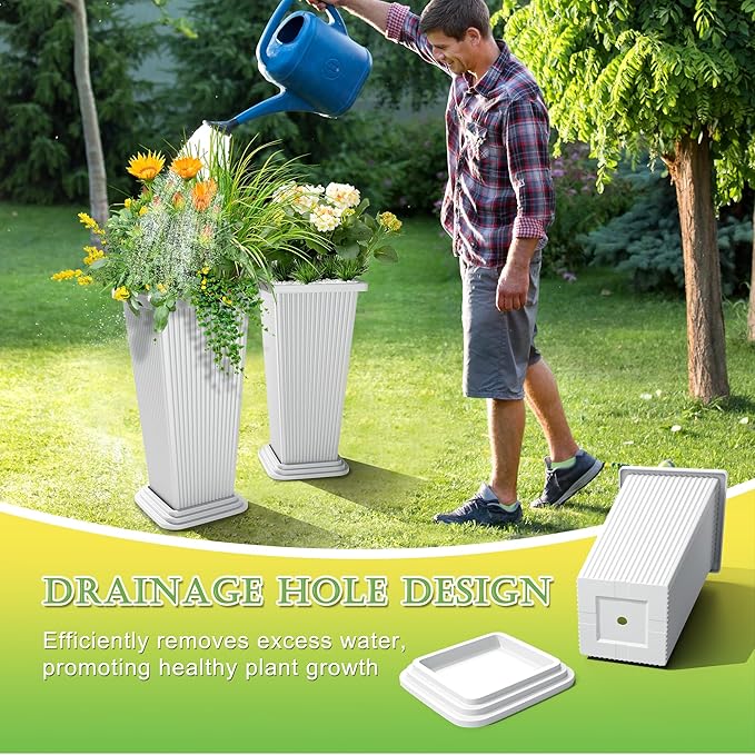 - INCLUDES DRAINAGE TRAY: The included tray ensures proper drainage, protecting your plants from overwatering. These tall planters work well as flower pots for indoor plants, offering both beauty and functionality for your home