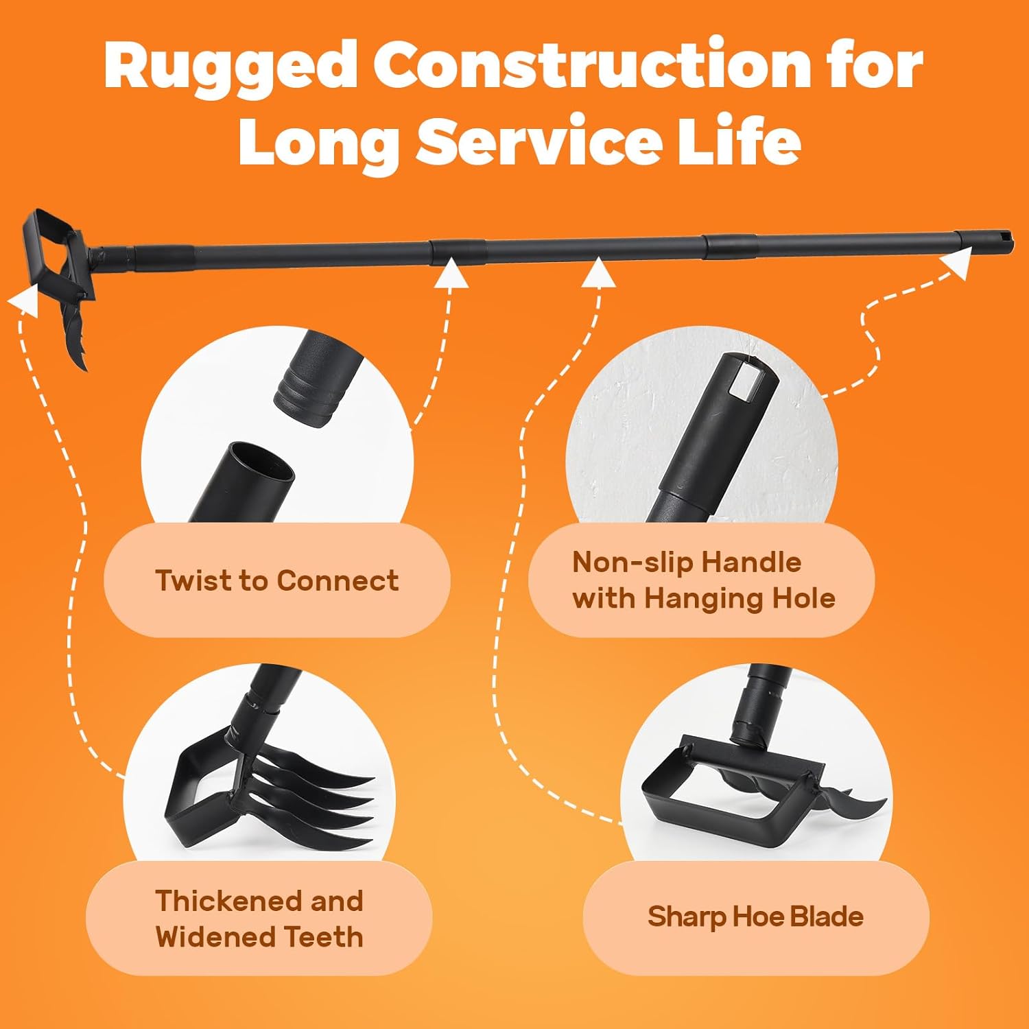 - Useful Garden Tool: The Weed Puller features a 2-in-1 design with a Hula Garden Hoe and a 4 Tines Rake, making it an essential garden tool for efficient weeding and soil cultivation.