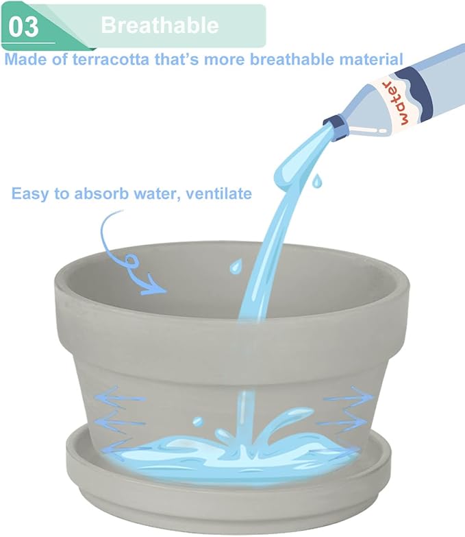 - Quality Materials: Terra cotta pots Making from high-quality clay through high-temperature baking, the walls of the pots draw the water out of the soil to help the soil dry quicker.