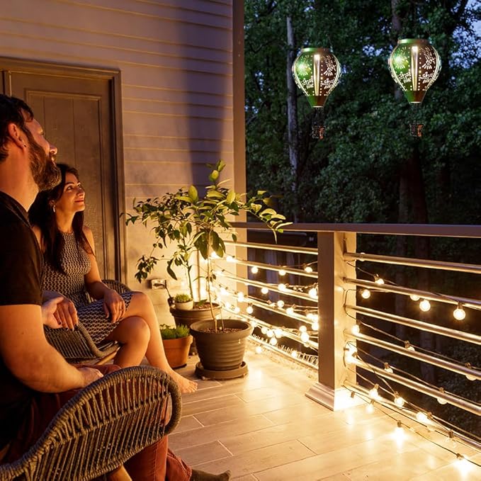- Solar Lanterns: This hot air balloon solar lantern is equipped with efficient solar panels, which can be turned on and off before use. This hanging solar lantern automatically absorbs sunlight during the day and provides warm light at night, adding a playful and elegant atmosphere to the garden.