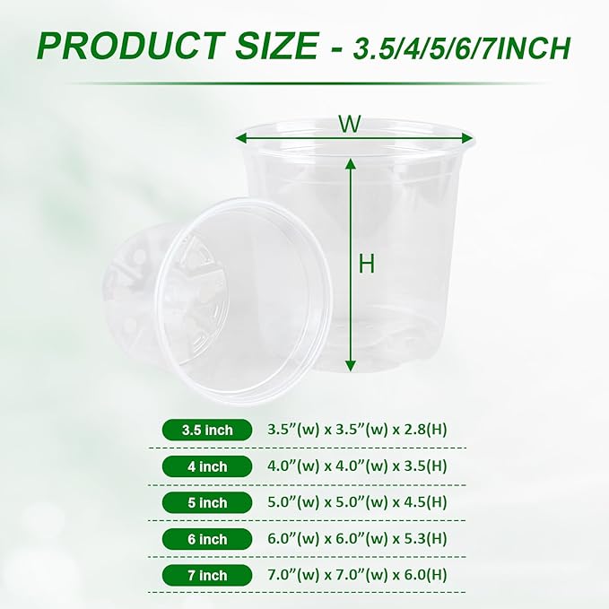 - Package Includes: Plastic clear nursery pot contains 50pcs 3.5 4 5 6 7 inch nursery pots(10pcs x 5size)