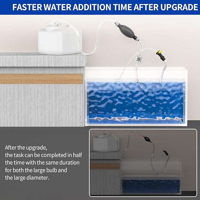 - More Time-Saving: Our golf cart battery water filler features larger PET pipes, upgraded from 11mm to 16mm in diameter, significantly enhancing water flow speed. With airbag, this allows you to complete the watering task in half the time