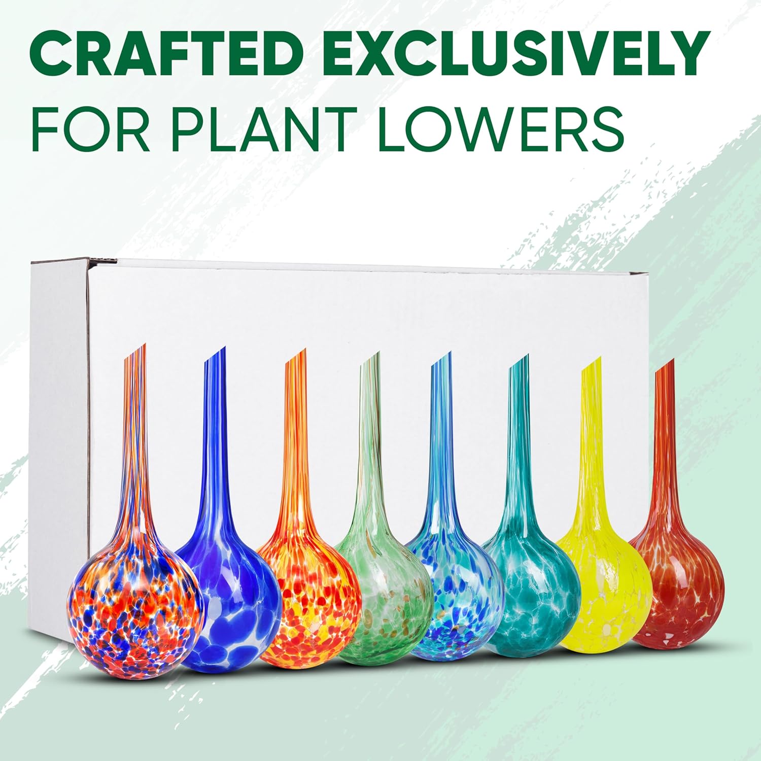 Plant Watering Globes Set of 8 - Small Self Watering Globes for Indoor & Outdoor Plants - Multicolored, Automatic, Glass Watering Bulbs for Daily Use, Plant Watering Devices