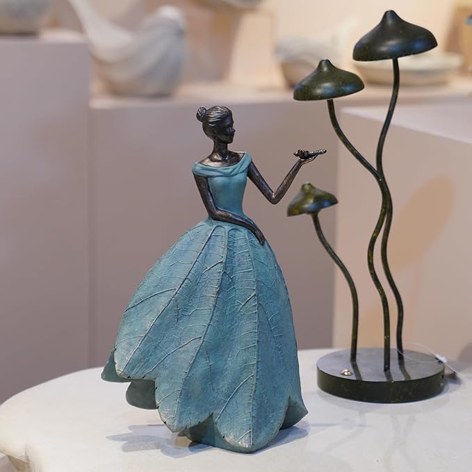 - Fairy Statue: Do you think your garden is too drab? Our leaf Angel girl statue product is originally designed by the designer. The skirt is in the shape of a leaf with the delicate texture of a leaf, which looks very artistic. It can add a different aesthetic feeling to your room or garden.