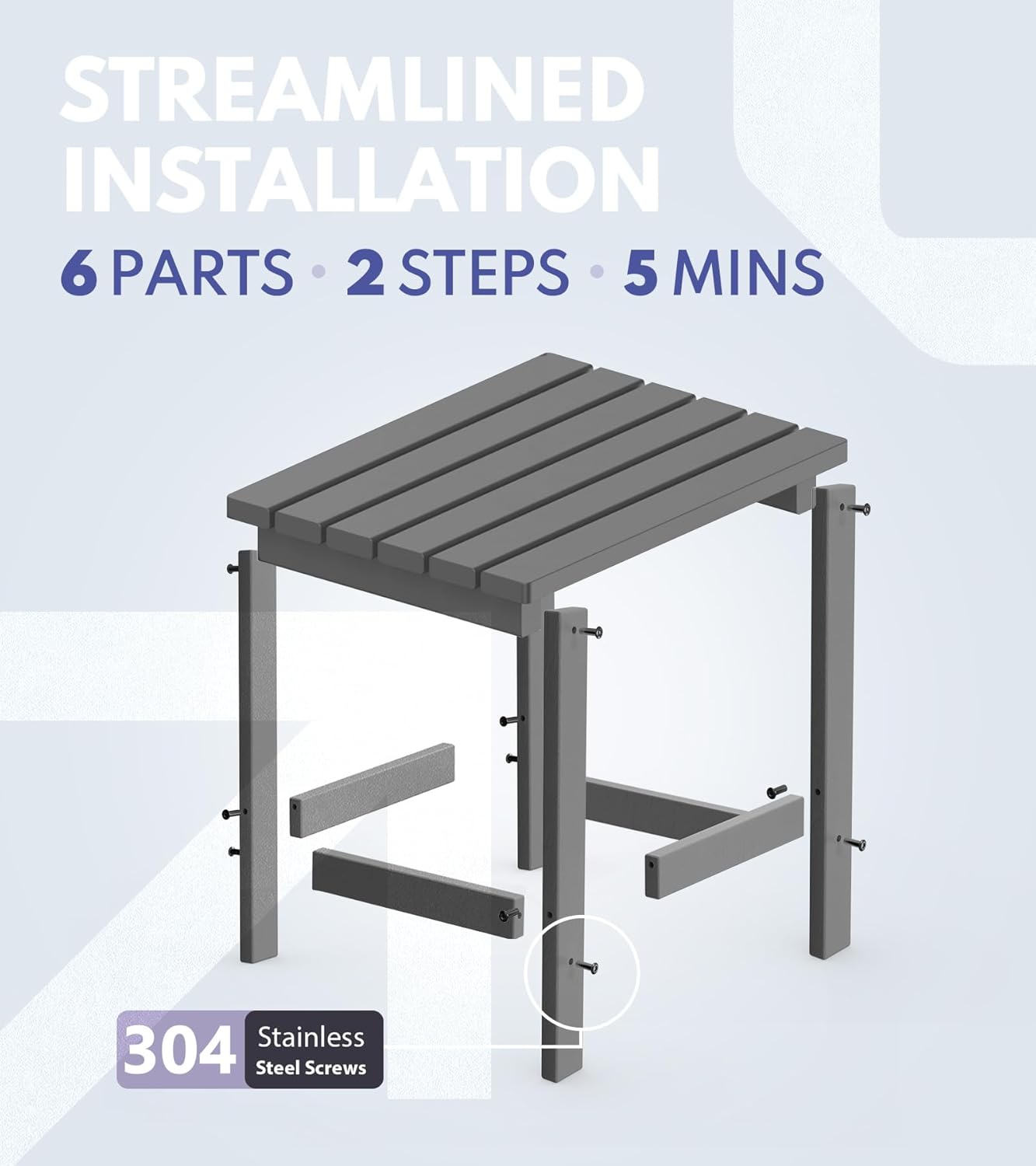 - 【Easy to Assemble & Easy Maintenance】The outdoor side tables for patio is easy to assemble with clear instructions and necessary hardware. The installation is effortless, safe, stable, and will not easily fall off. The small outdoor table requires no painting, staining, waterproofing, or similar maintenance. You can clean easily with soap, water, a soft-bristle brush or sanding sponge.