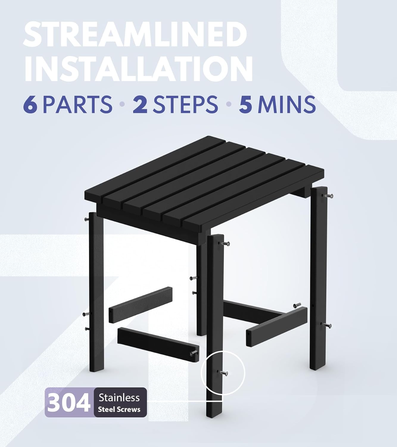 - 【Easy to Assemble & Easy Maintenance】The outdoor side tables for patio is easy to assemble with clear instructions and necessary hardware. The installation is effortless, safe, stable, and will not easily fall off. The small outdoor table requires no painting, staining, waterproofing, or similar maintenance. You can clean easily with soap, water, a soft-bristle brush or sanding sponge.