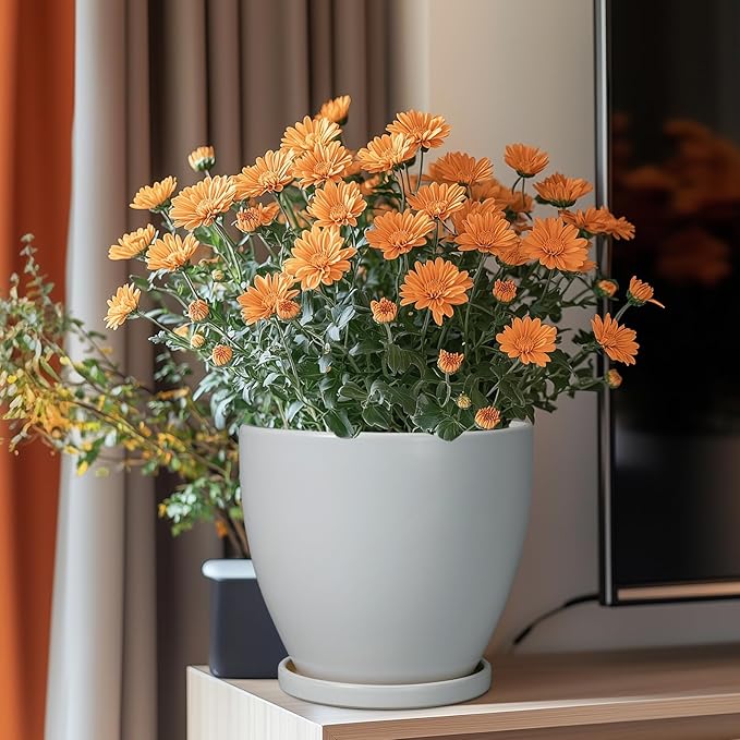 - Plant Pots with Drainage Holes and Saucers: The drainage holes can effectively remove excess water from the ceramic planter to avoid root rot; while the ceramic plant tray can catch excess water seeping out from the bottom of the ceramic flower pot to keep the home environment tidy