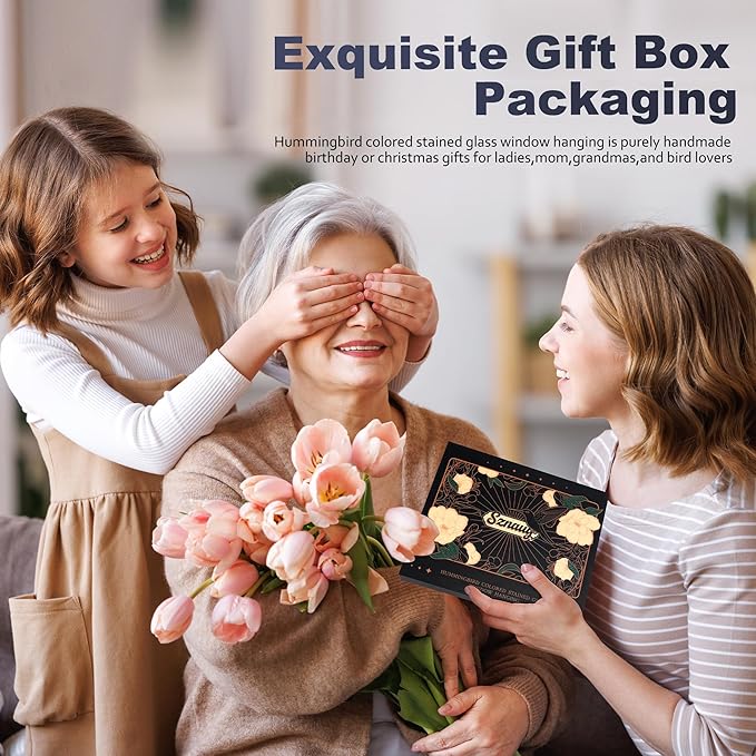 - Exquisite Gift Box:The stained glass window hanging is a hummingbird gifts for women.It can be used as a hummingbird gifts for female friends, mothers, birthdays, anniversaries, and Christmas,gifts for bird lovers