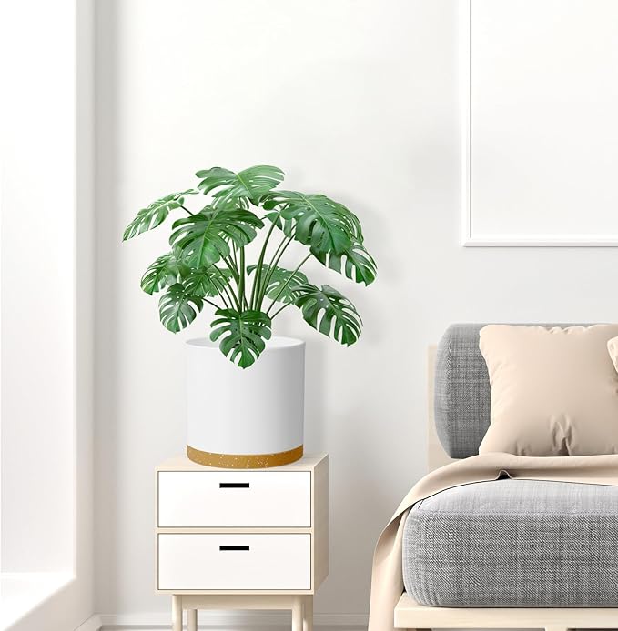 - 【Depth & Large】 12 inch large indoor plant pot with Dia: 12.5 in, Height: 12.9 in, tall plant pots with white with brown provide enough space to accommodate a variety of plants, offering flexibility for small to medium-sized greenery and flowers