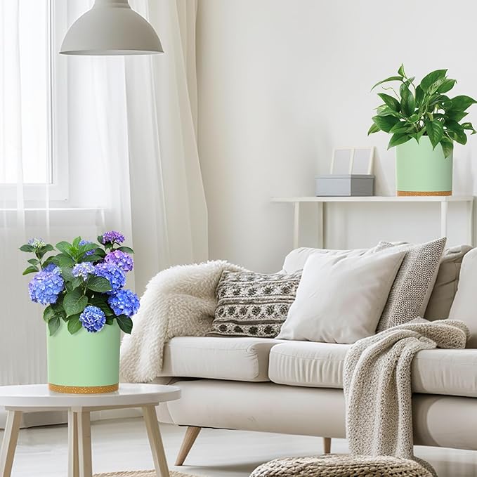 - 【Depth & Large】 8 inch indoor plant pot with Dia: 8 in, Height: 7.8 in, tall plant pots with green with brown provide enough space to accommodate a variety of plants, offering flexibility for small to medium-sized greenery and flowers