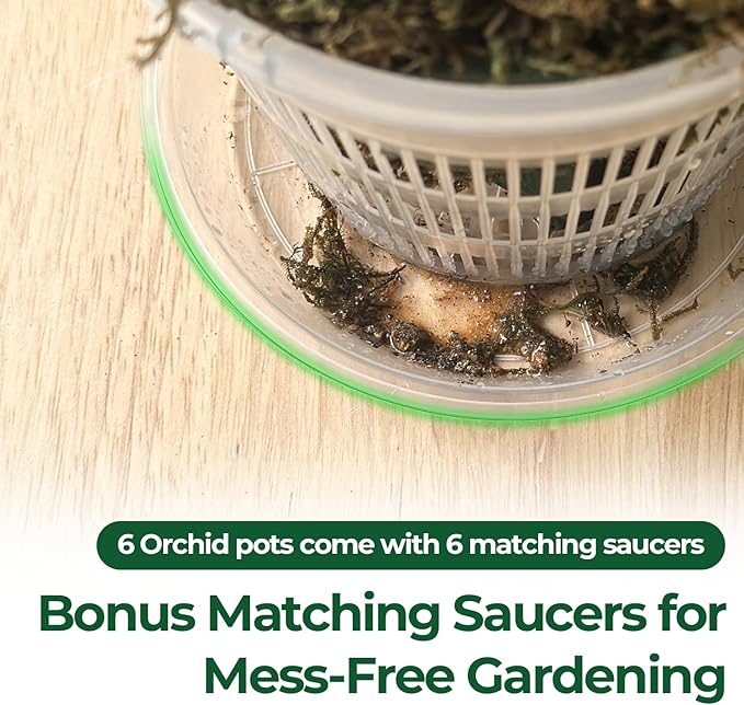 - Special Feature : 9-Pack in 3 Sizes, a perfect fit for every orchid growth stage!, Bonus saucers included, hassle-free gardening at its best!, Holes for 360° airflow, banishing root rot for thriving orchids!, Transparent design, keeping root health in clear sight! 9-Pack in 3 Sizes, a perfect fit for every orchid growth stage!, Bonus saucers included, hassle-free gardening at its best!, Holes for 360° airflow, banishing root rot for thrivi… See more