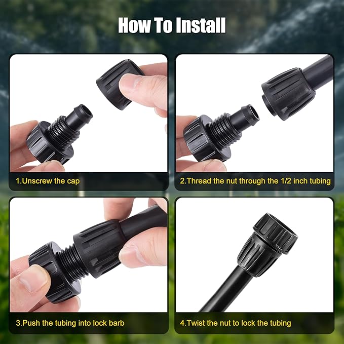 - Quick Connect:without any other special tools easy to install.press the lock barbed tee into the tubing.screw the caps.holds tubing tightly.unique lock barbed design ensures no leaking.