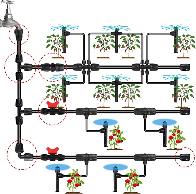 - Widely used:gardens, pot plants greenhouses, patio vegetable gardens, flower beds, lawns, and other agricultural irrigation.Makes running additional lines very simple!