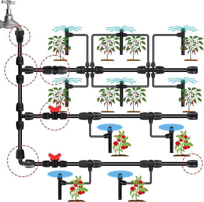 - 【Multi-Functional】:Suitable for garden DIY irrigation project, pot plants greenhouses, patio vegetable gardens, flower beds, lawns, and other agricultural irrigation.Makes running additional lines very simple!help you to create your own drip system as you want.