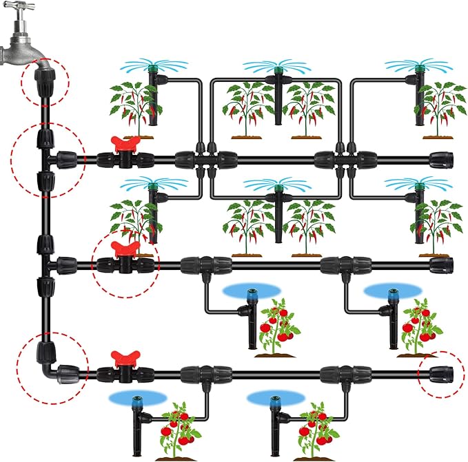 - 【Multi-Functional】:Suitable for garden DIY irrigation project, pot plants greenhouses, patio vegetable gardens, flower beds, lawns, and other agricultural irrigation.Makes running additional lines very simple!perfect for Rain-Bird / Rain-drip 1/2" drip irrigation tubing.