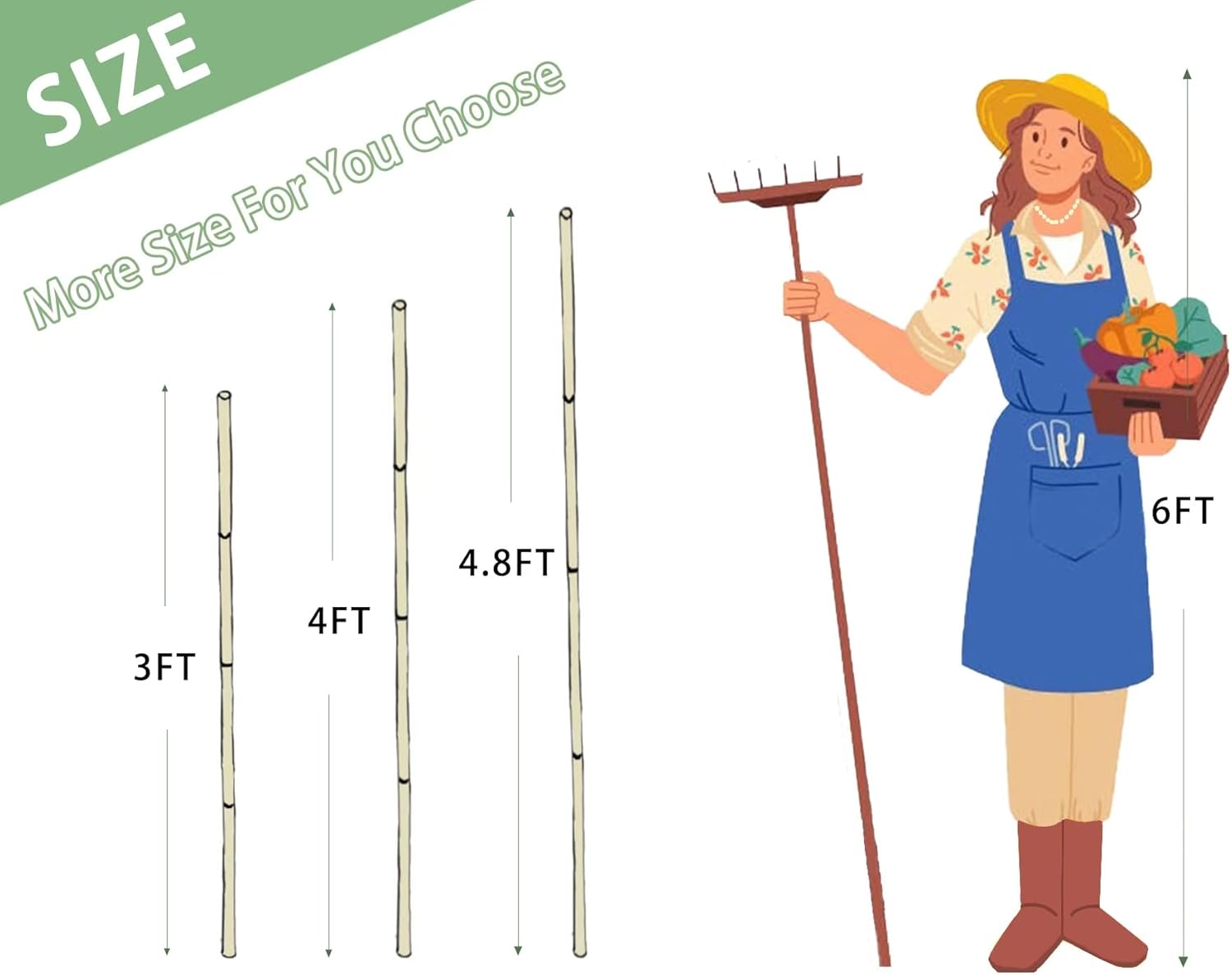 - [Multi-purpose] - This size bamboo pile is suitable for indoor plants such as flowers and potted plants, as well as outdoor plants such as tomatoes, beans, vegetables, young trees, large flowers and potted plants. As the plants grow, our bamboo posts are able to support the growth of the plants and make the plants grow straighter and more beautiful, or you can use some simple tools to make a bamboo frame, flower lattice or any other structure you want to add extra structural beauty to the garden