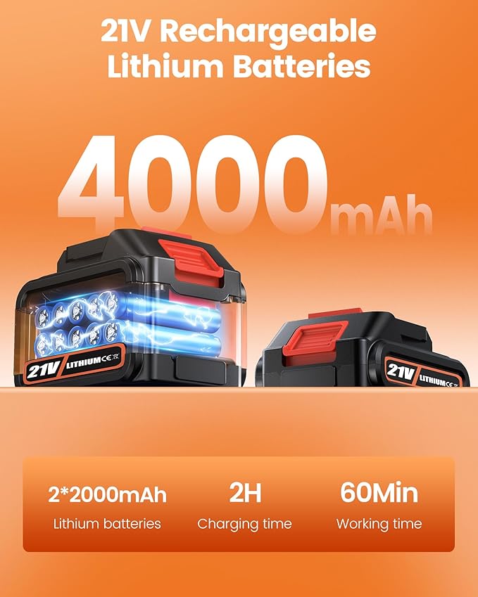 - 4000 mAh Battery: The small handheld chainsaw takes about 2 hours to charge and can work for 30 minutes with a single battery. It comes with 2 pcs 2000mAh rechargeable batteries. Say goodbye to struggling with electrical cords and make your garden art easier. Our mini chainsaw is compatible with Makita batteries