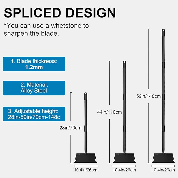 - Sturdy and Durable Design: Crafted from high-quality alloy, both the cleaning shovel head and handle are sturdy and built to last. The thickened shovel head ensures effortless weed removal and ice scraping without the blade rolling. Additionally, the alloy handle offers exceptional durability compared to traditional wooden handles, making it ideal for heavy-duty use.
