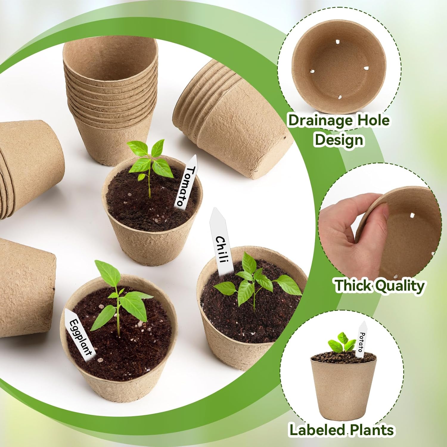 - Package Content: Package includes 50 pieces round peat pots 4inch and 50 pieces plant labels, seedling pots set is enough for you to raise seedlings and label a variety of plants, and peat pots are easy to deal with family gardening, balcony planting or large-scale planting