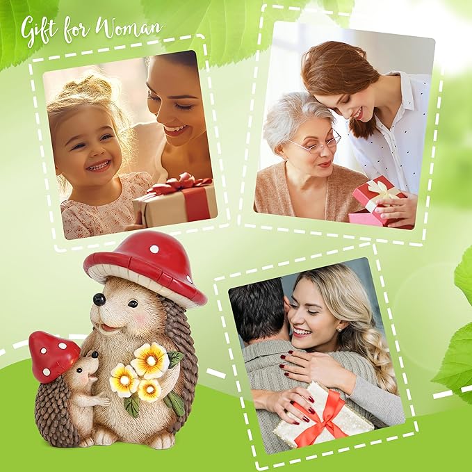 Solar Hedgehog Garden Statue Lights for Outdoor Decor, Resin Hedge hog Figurine Lighting Decorations, Patio Yard Lawn Ornaments Birthday Gifts for Women Mom Grandma