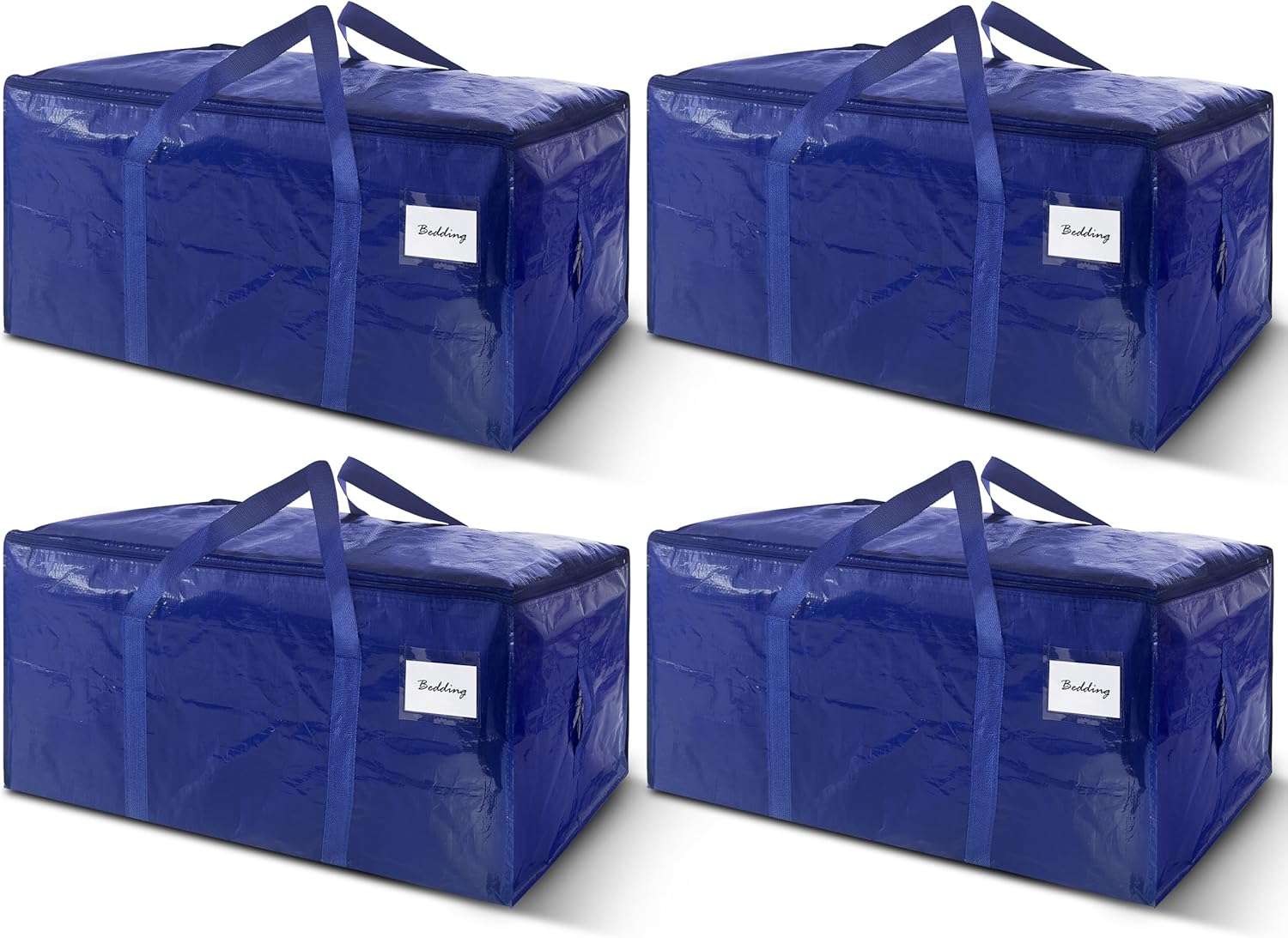 4 Pack Extra Heavy Duty Large Moving Bags with Strong Zipper & Carrying Handles, Sturdy Clothes Storage Bag Totes Bins, Packing Bags Moving Boxes College Moving Supplies, Dark Blue - 33 gal