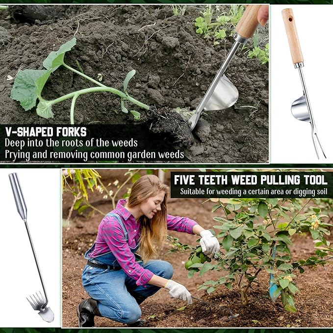 - Garden Weeding Tools for Gardening: 5 Different weeding tools to meet a variety of horticultural task requirements, manual weeders for weeding or loosening soil, transplanting or ripping shovels, gap knives, five tooth hoes, and root lifters, easy to use, easily completing various gardening tasks
