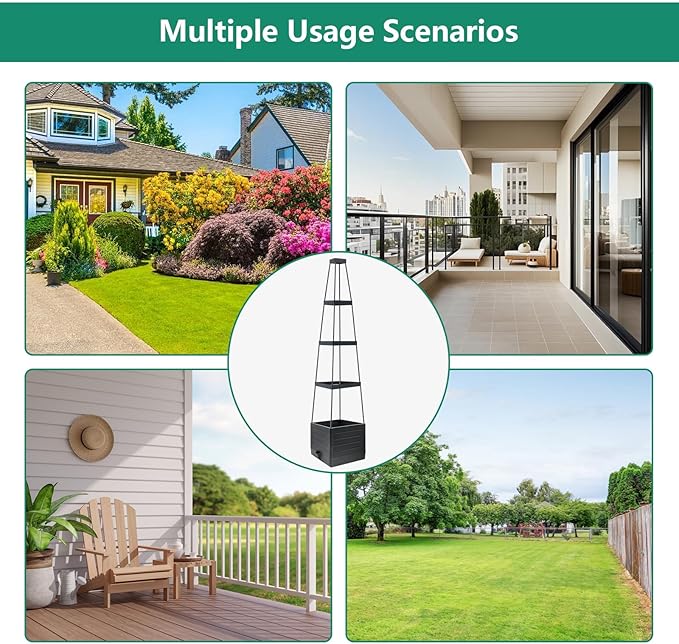 - 【Upgraded Tower Design】The tomato planter box height is 58in, features a unique 4 corner tower design, provide strong support for the plants,vine,vegetables,flowers in your garden, reduce the situation that the branches break due to heavy weight. This design maximizes the vertical space, allowing plants to grow taller and spread out.