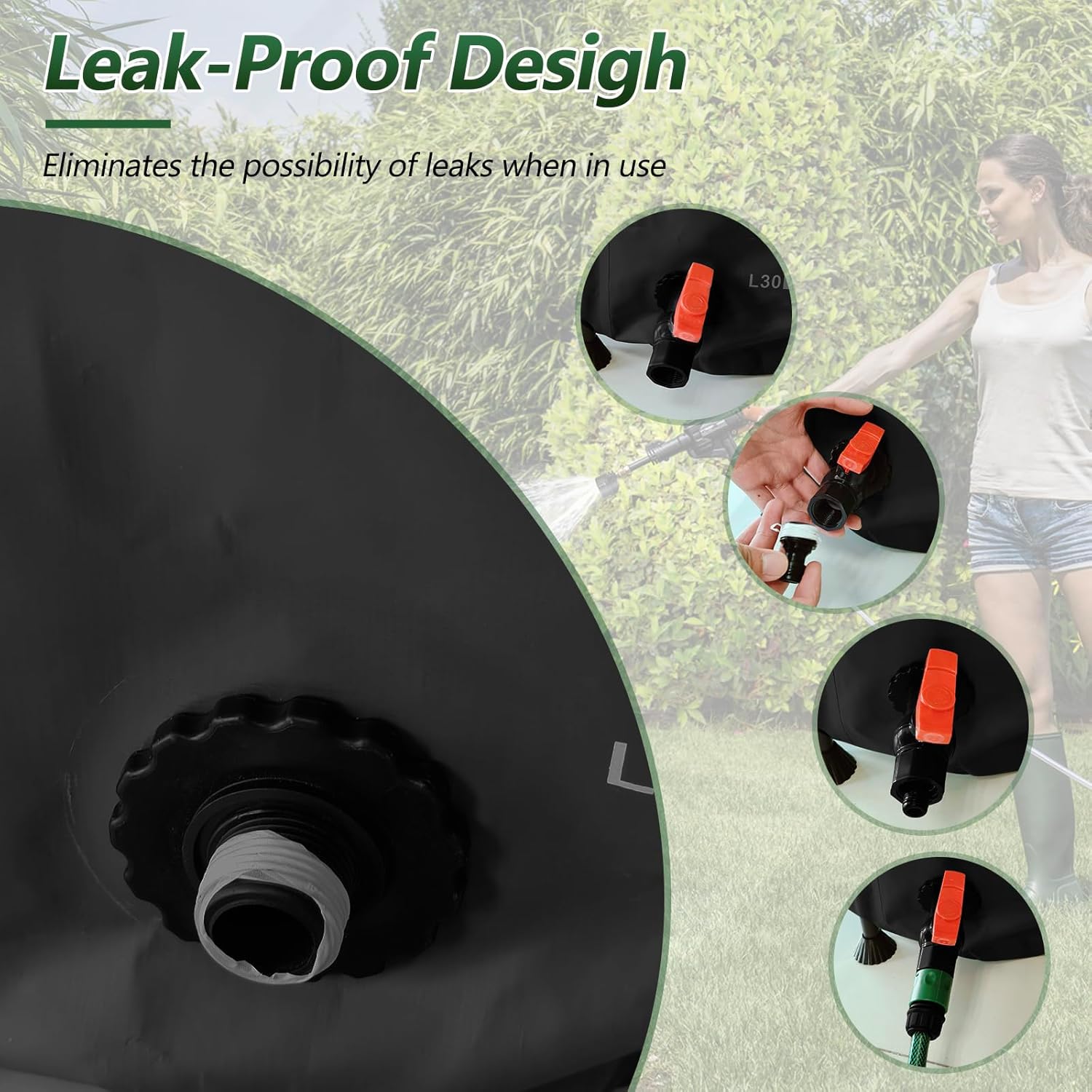 - Premium Materials: Made from premium waterproof PVC material featuring strong UV resistance, this rain barrel ensures safe usage. Its high-temperature heat-sealed construction guarantees a leak-proof seal, capable of withstanding temperatures from -30℃ to 70℃