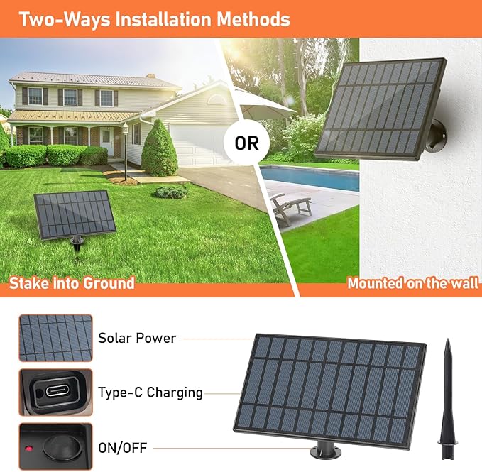 - 【Solar Powered &Type-C Charging】The outdoor solar string lights soak up the sun's energy during the day and automatically turn on at night, requiring no electricity. Besides, the extra Type-C charging ports guarantees a productive charging without worrying about continuous rainy days, providing a hassle free using experience. 180 degree adjustable solar panel allows you to change the direction accordingly to get the panel maximum exposed under sunlight to gain a better charging effect.