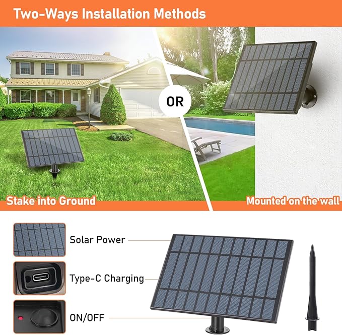 - 【Solar Powered &Type-C Charging】The outdoor solar string lights soak up the sun's energy during the day and automatically turn on at night, requiring no electricity. Besides, the extra Type-C charging ports guarantees a productive charging without worrying about continuous rainy days, providing a hassle free using experience. 180 degree adjustable solar panel allows you to change the direction accordingly to get the panel maximum exposed under sunlight to gain a better charging effect.