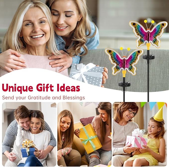 Solar Butterfly Lights,Solar Garden Decor, Outdoor Garden neon Lights,Butterfly Solar Stake Lights,Yard Patio Pathway Decoration Outdoor(Yellow, 2pack)