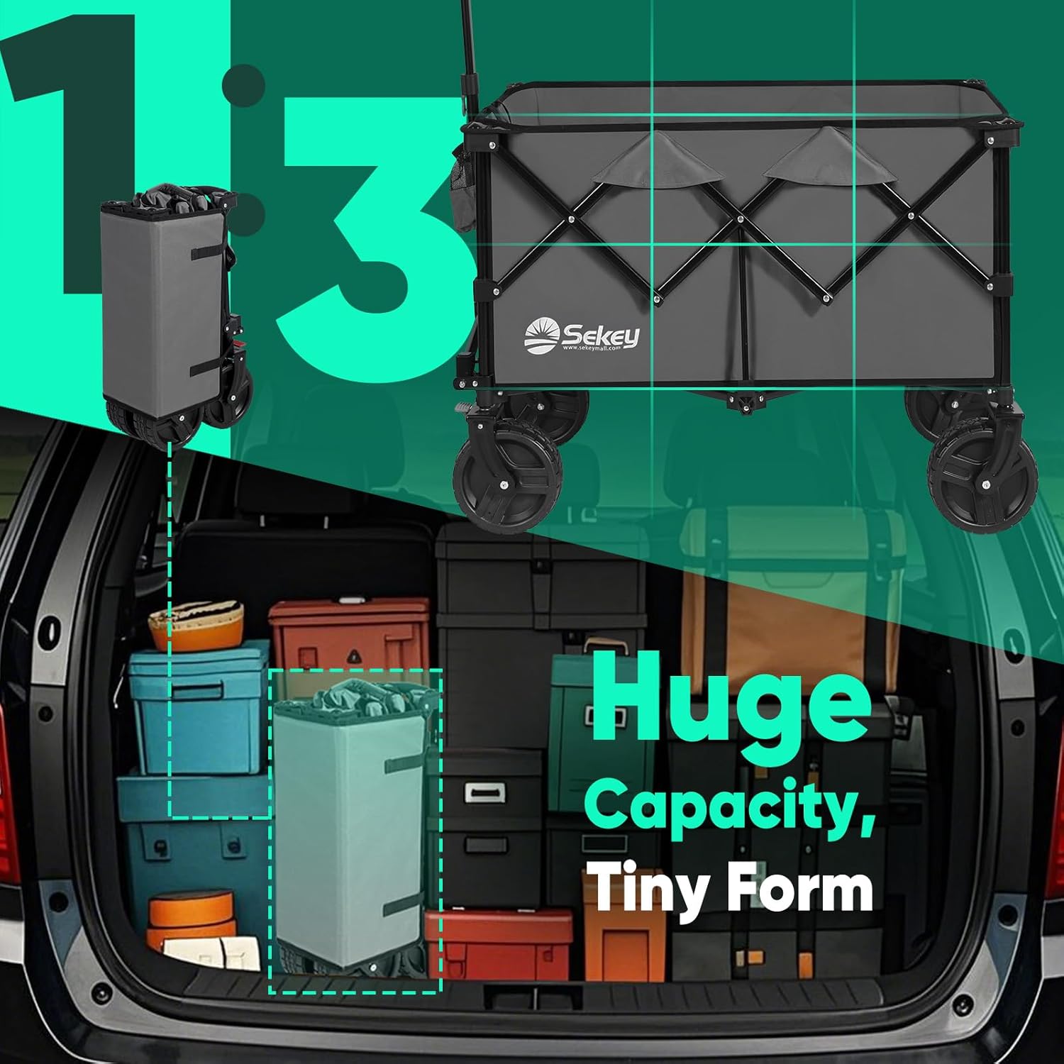 - 【𝐆𝐨 𝐀𝐧𝐲𝐰𝐡𝐞𝐫𝐞 𝐖𝐡𝐞𝐞𝐥𝐬】: Featuring 𝟖" 𝐝𝐢𝐚𝐦𝐞𝐭𝐞𝐫 𝐰𝐡𝐞𝐞𝐥𝐬 𝐚𝐧𝐝 𝟑" 𝐰𝐢𝐝𝐞 𝐭𝐫𝐞𝐚𝐝𝐬, Sekey wagon glides effortlessly over sand and rough terrain. The 𝐚𝐧𝐭𝐢-𝐬𝐥𝐢𝐩 𝐫𝐮𝐛𝐛𝐞𝐫 strip enhances traction and reduces vibrations, while the 𝐛𝐮𝐢𝐥𝐭-𝐢𝐧 𝐛𝐫𝐚𝐤𝐞𝐬 provide reliable stopping power wherever you go.