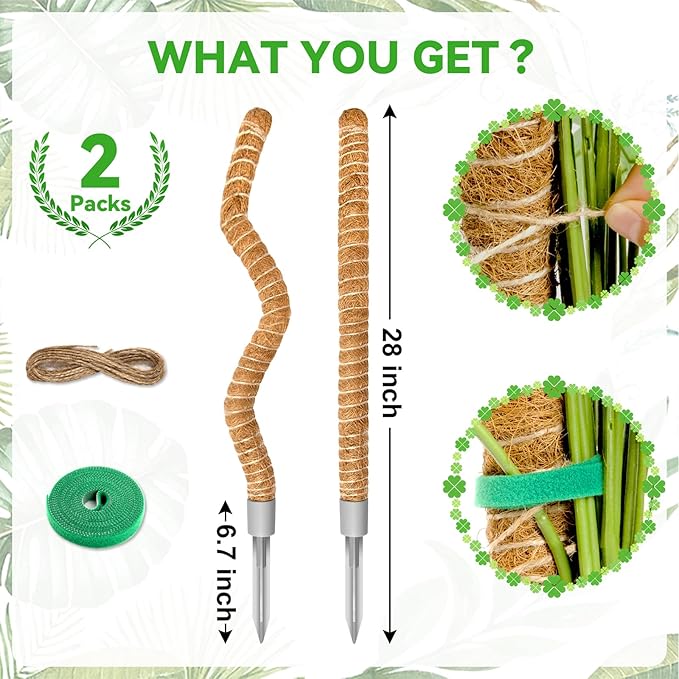 - Sturdy Moss Poles for Indoor Plants: Expertly crafted for durability and functionality, our 2-pack of 28-inch moss poles offers reliable support for a variety of climbing plants, including monstera, philodendron, and pothos. Featuring a flexible design and an easy setup process, these plant supports are perfect for both beginners and experienced gardeners