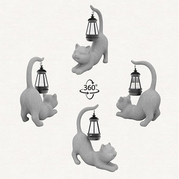 Solar Cat Garden Statue 15 Inch Porch Patio Decor for Outside Yard Decoration Outdoor Unique Housewarming Gardening Birthday Gifts for Cat Lovers Women Grandma